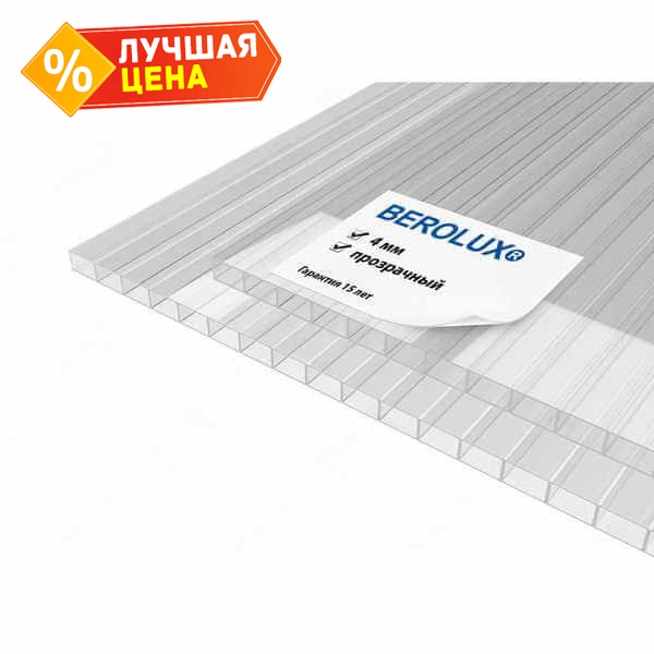 Сотовый поликарбонат 4 мм BEROLUX прозрачный 2100х6000 мм
