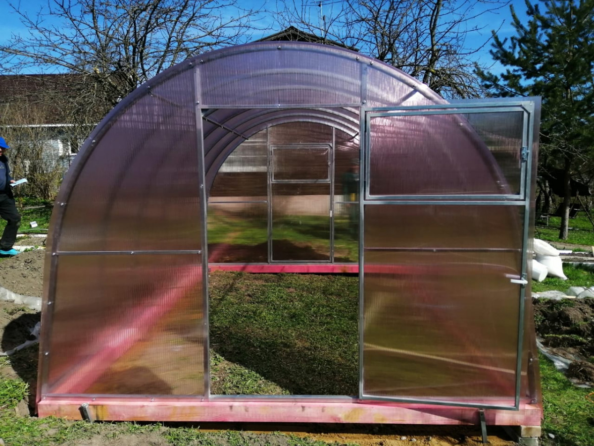 • практичный каркас с дверьми в каждом торце обеспечивает легкий доступ в теплицу и её проветривание