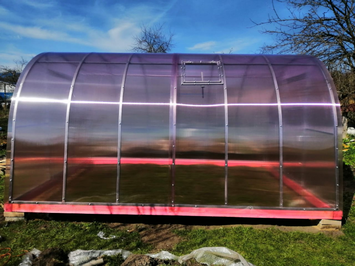 В разобранном виде теплица состоит из отдельных сварных рам в виде дуги.