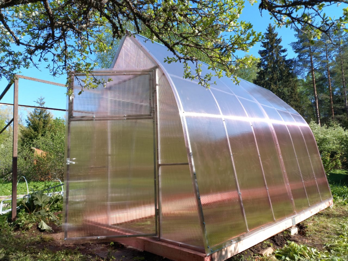 • практичная конструкция с дверьми в каждом торце обеспечивает легкий доступ в теплицу и её проветривание