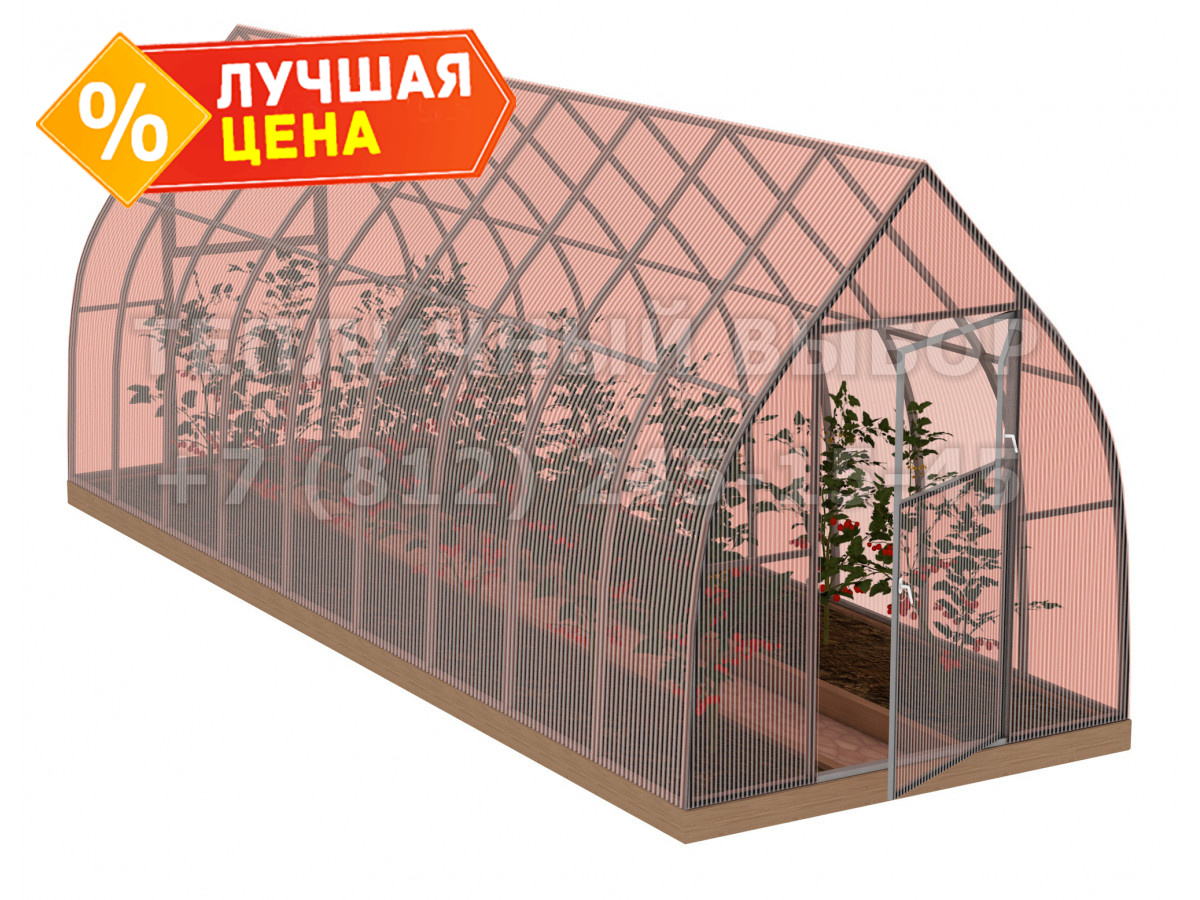Теплица из поликарбоната-фито Усиленная Капелька 2,1х8 h=2.3 м профиль 25х25 мм