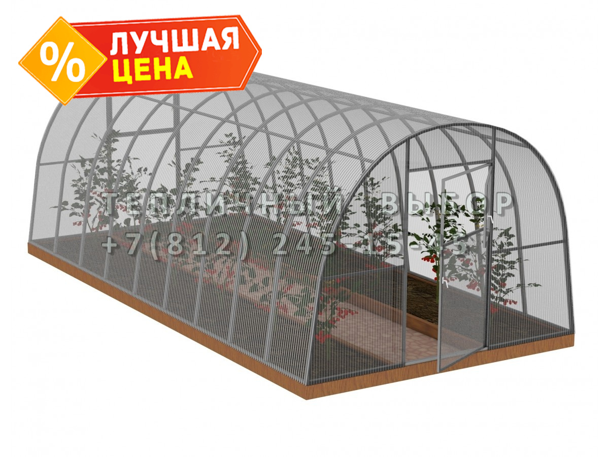 Теплица из поликарбоната Усиленная Арочная 2,5х6 h=2 м профиль 20х20 мм