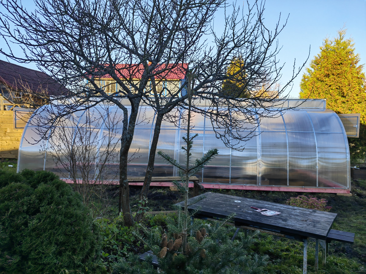 • арочная форма теплицы способствует скатыванию снега в зимний период и равномерному распределению солнечного света, в теплице отсутствуют неосвещенные участки;