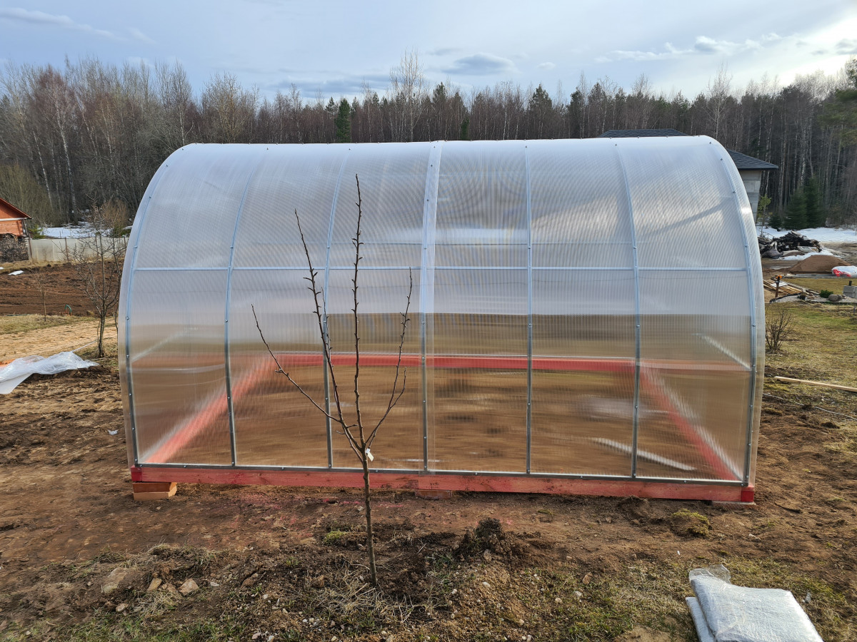• арочная форма теплицы способствует скатыванию снега в зимний период и равномерному распределению солнечного света, в теплице отсутствуют неосвещенные участки;