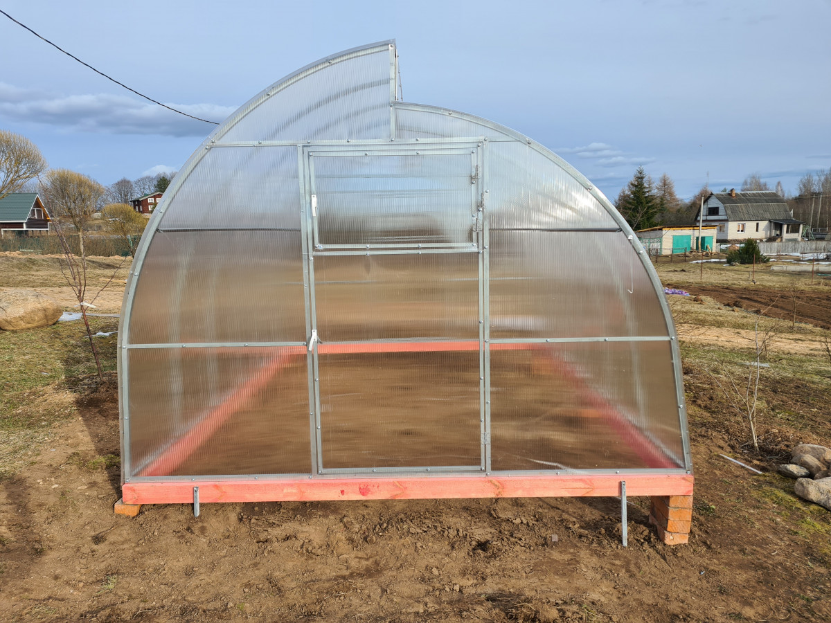 • длина фрамуги соответствует длине теплицы, высота 22 см, открывается изнутри и фиксируется в открытом состоянии с помощью ограничителя;